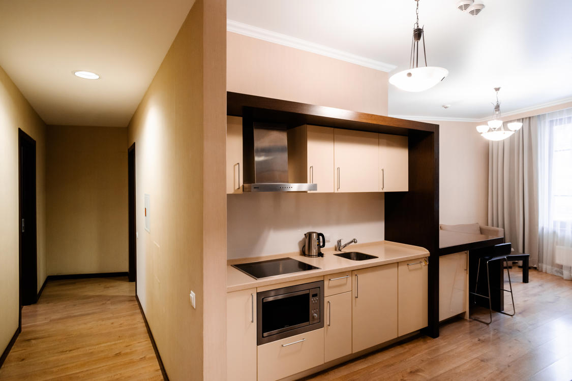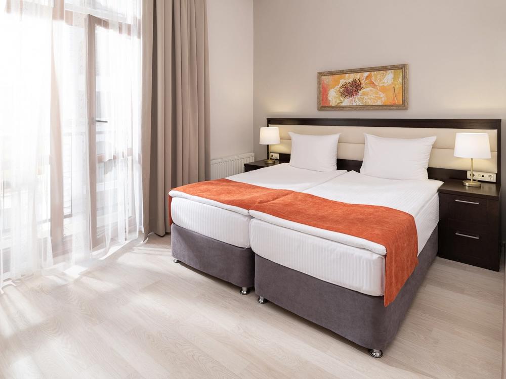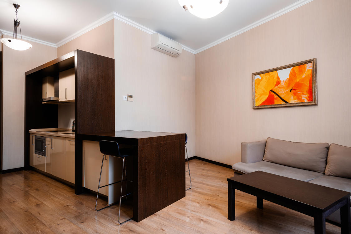 Гости могут расположиться в уютных апартаментах разных категорий, которые отличаются по планировке и площади. В номерах есть все для комфортного отдыха: удобная мебель, телевизор и Wi-Fi, ванная комната с банными и гигиеническими принадлежностями, сплит-система.